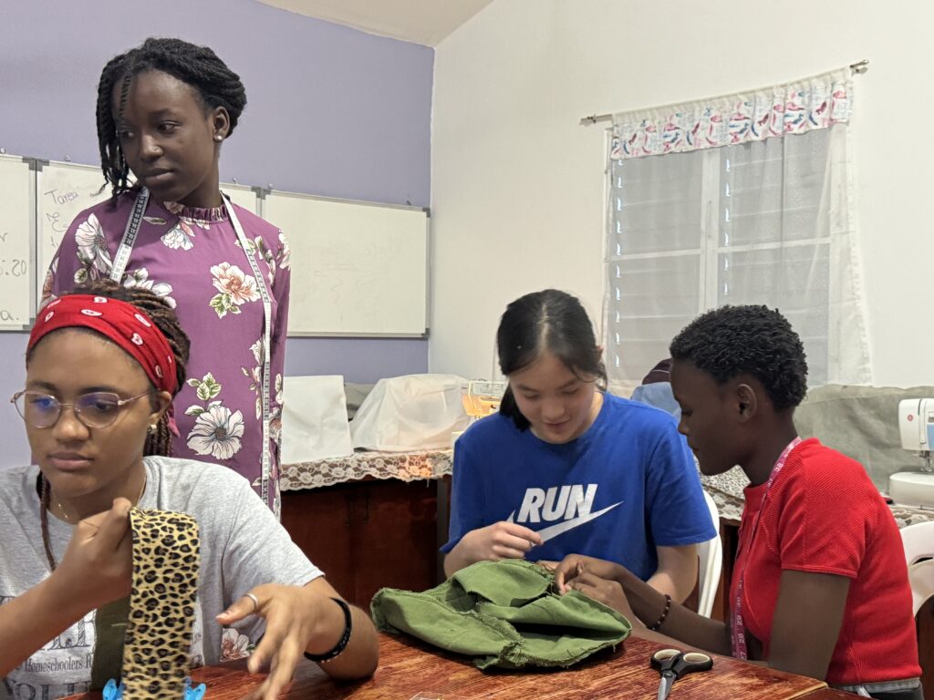 We sew, laugh, and learn together—girls from two worlds, stitching not only bags but friendships and futures.